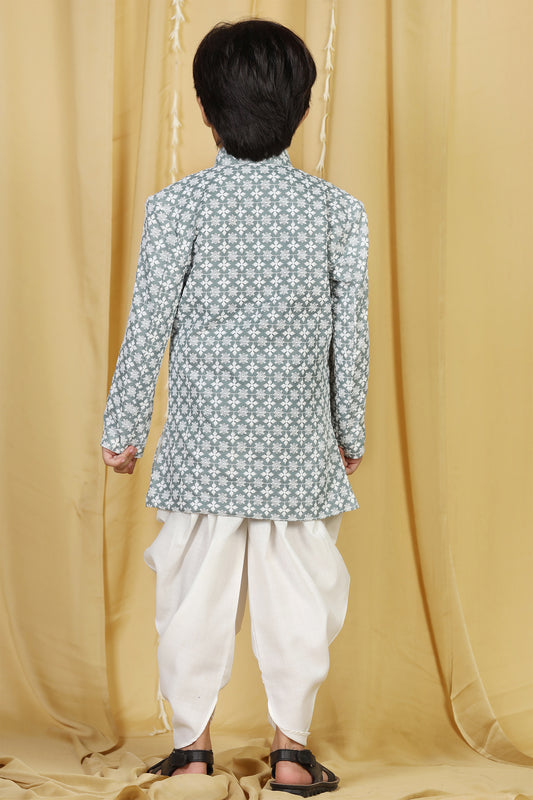 Kids Boys Sky Blue Embroidered Cotton Sherwani