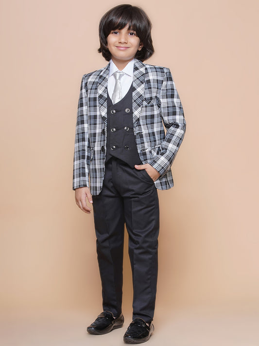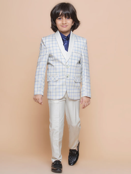 Boys Kids Check White Cotton Blend Suit Set