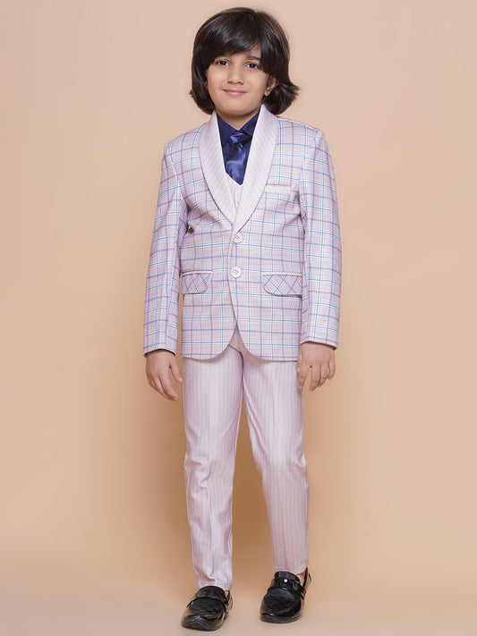 Boys Kids Check Light Pink Cotton Blend Suit Set