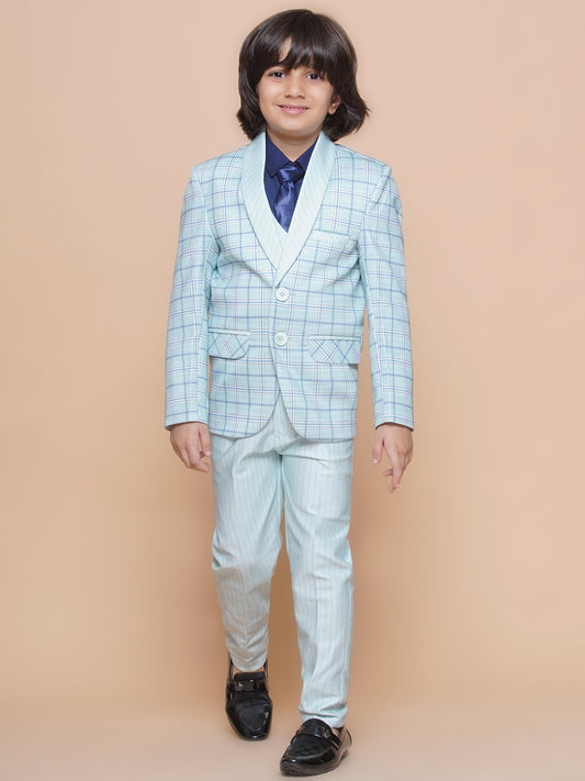 Boys Kids Check Light Green Cotton Blend Suit Set