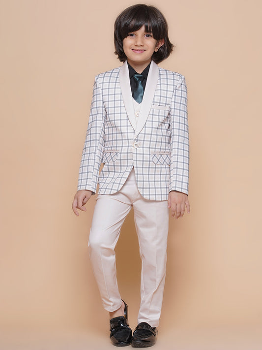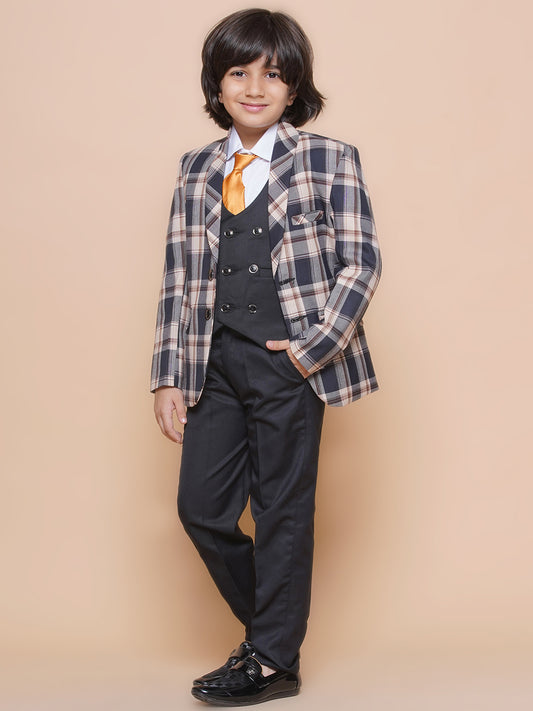Boys Kids Check Beige Cotton Blend Suit Set