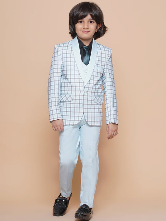 Boys Kids Check Sky Blue Cotton Blend Suit Set