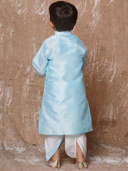 Kids Boys Sky Blue Solid Silk Blend Dhoti Set