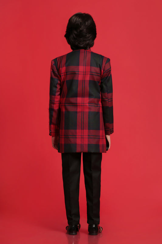 Kids Boys Red Checkered Cotton Blend Ethnic Set