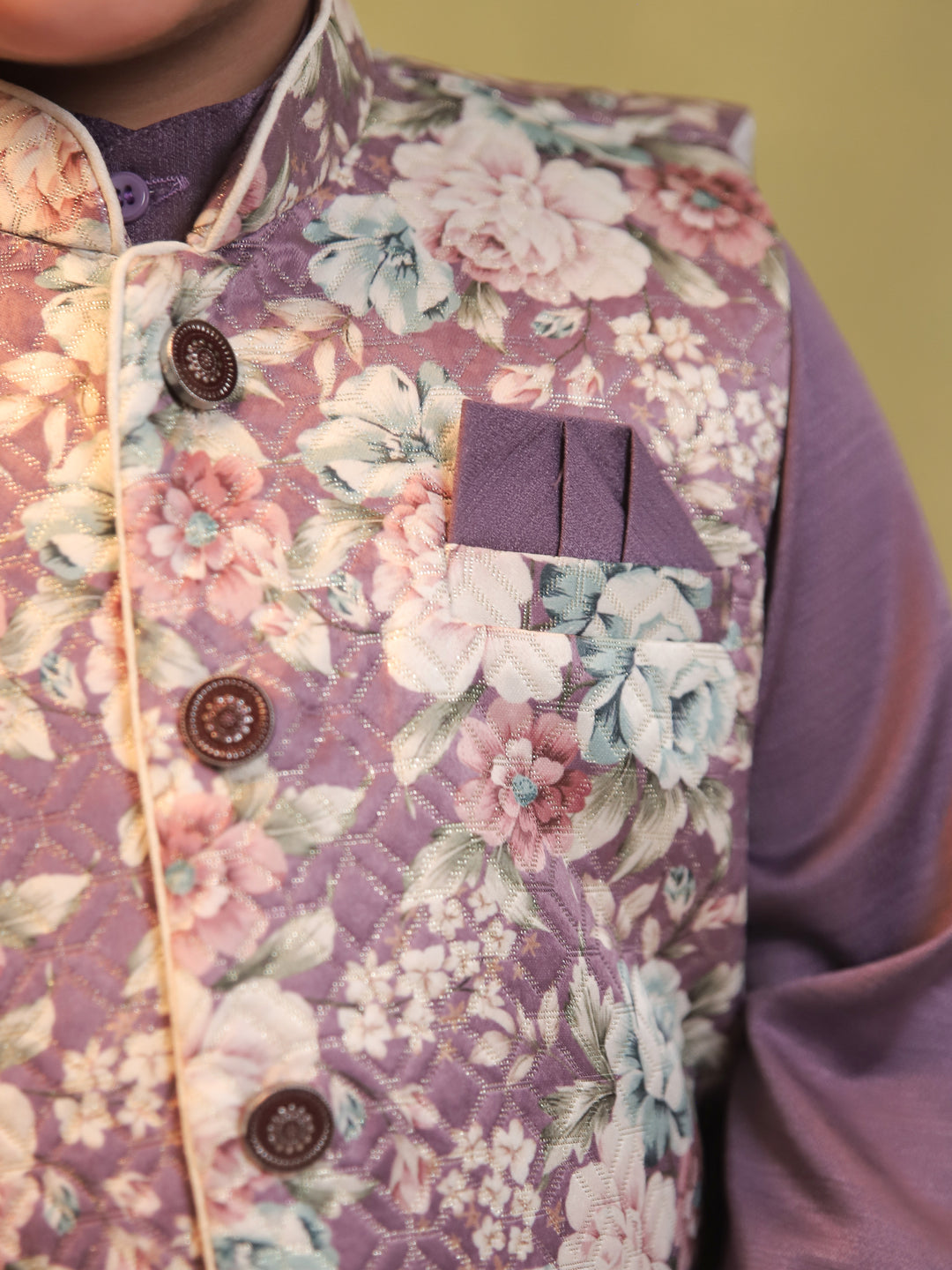 Purple Cotton Full Sleeves Floral Printed Dhoti Set
