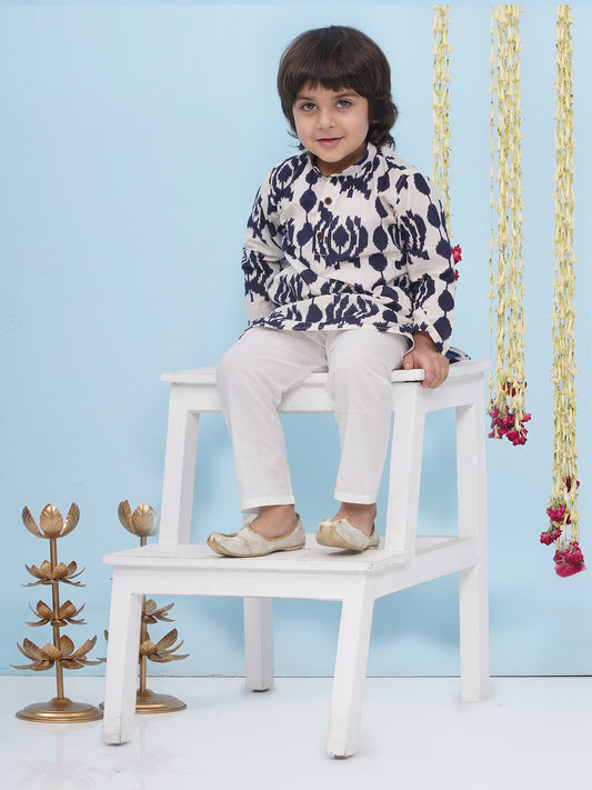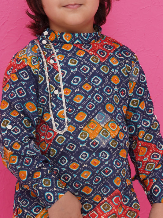 Aj Dezines Dark Blue Cotton Full Sleeves Printed Kurta Pyjama Set For Boys