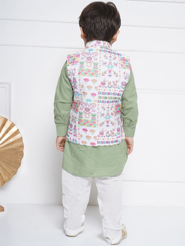 Kids Cotton Full Sleeve Printed Kurta Pajama & Waistcoat Set for Boys
