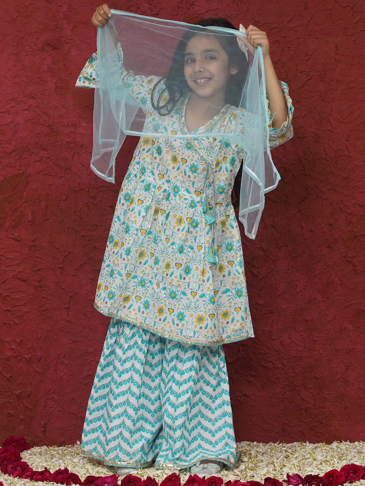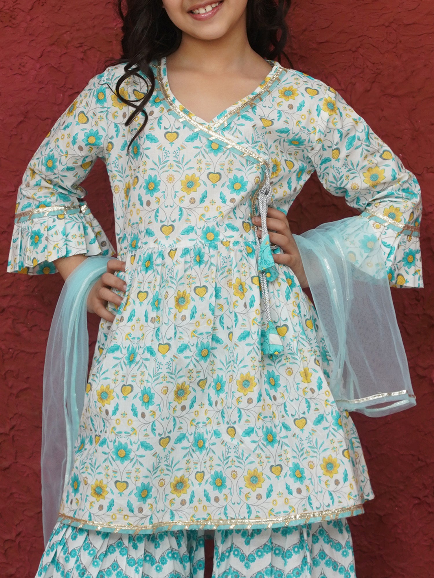 AJ Dezines Blue 3/4th Sleeves Floral Print Cotton Girls Suit Set For Girls