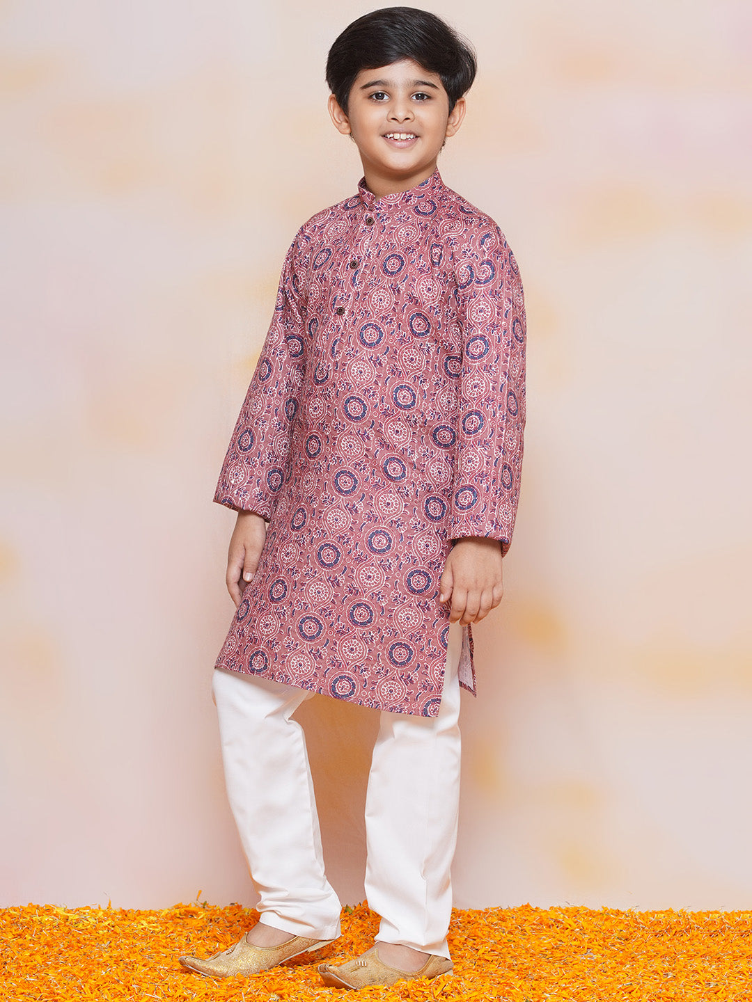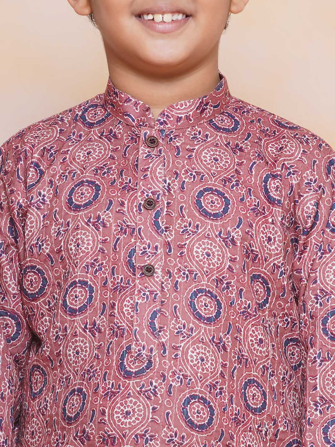 Kids Boys Purple Embroidered Cotton Kurta Pyjama Set