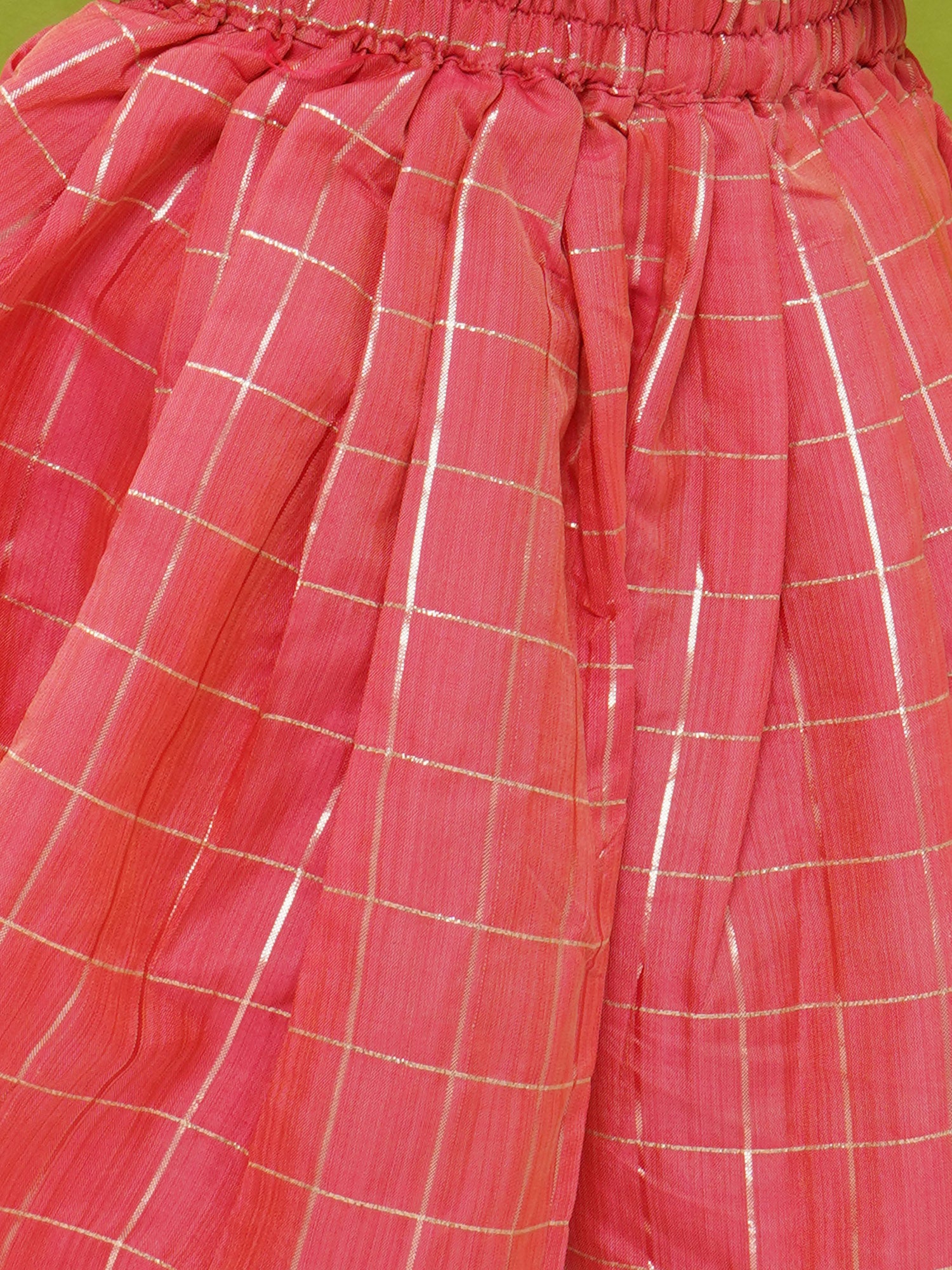 Aj Dezines Lime Green-Pink Shinny Silk Blend Sleeveless Check Pattern Print Indo Western For Girls