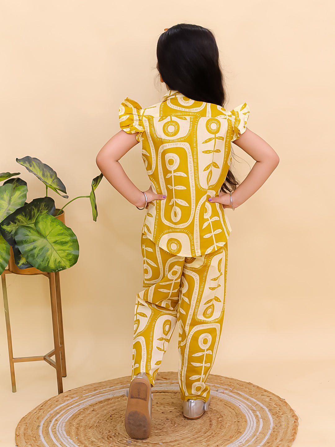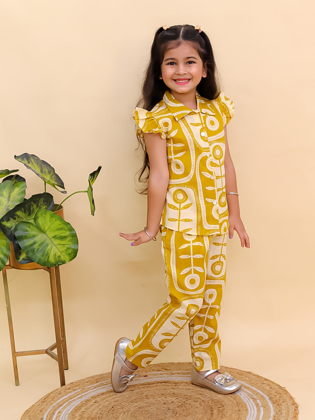 AJ Dezines Mustard Yellow Cotton Sleeveless Big Floral Print Girls Co-Ords