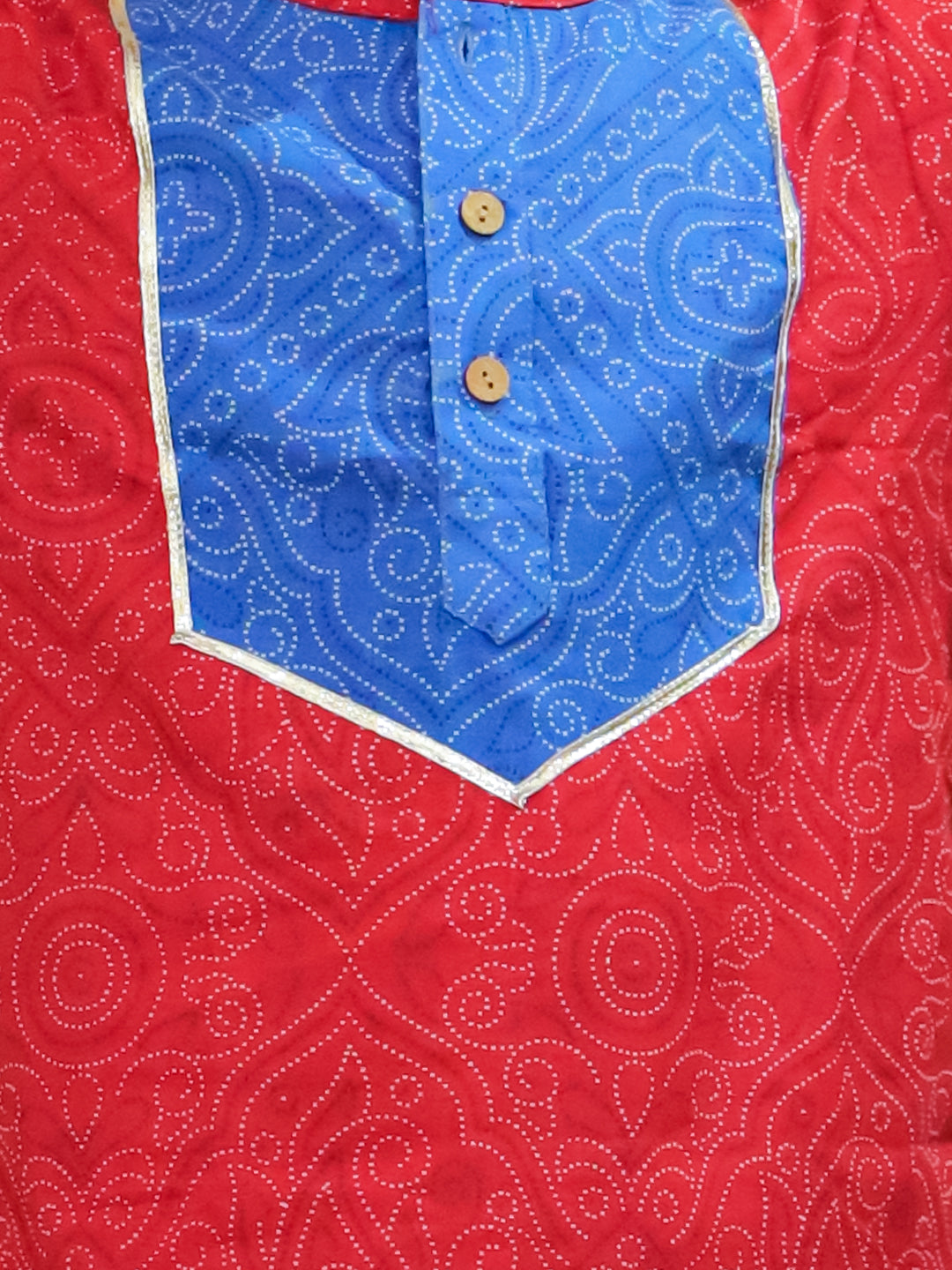 Boys Red Cotton Full sleeves Printed Kurta Pyjama Set