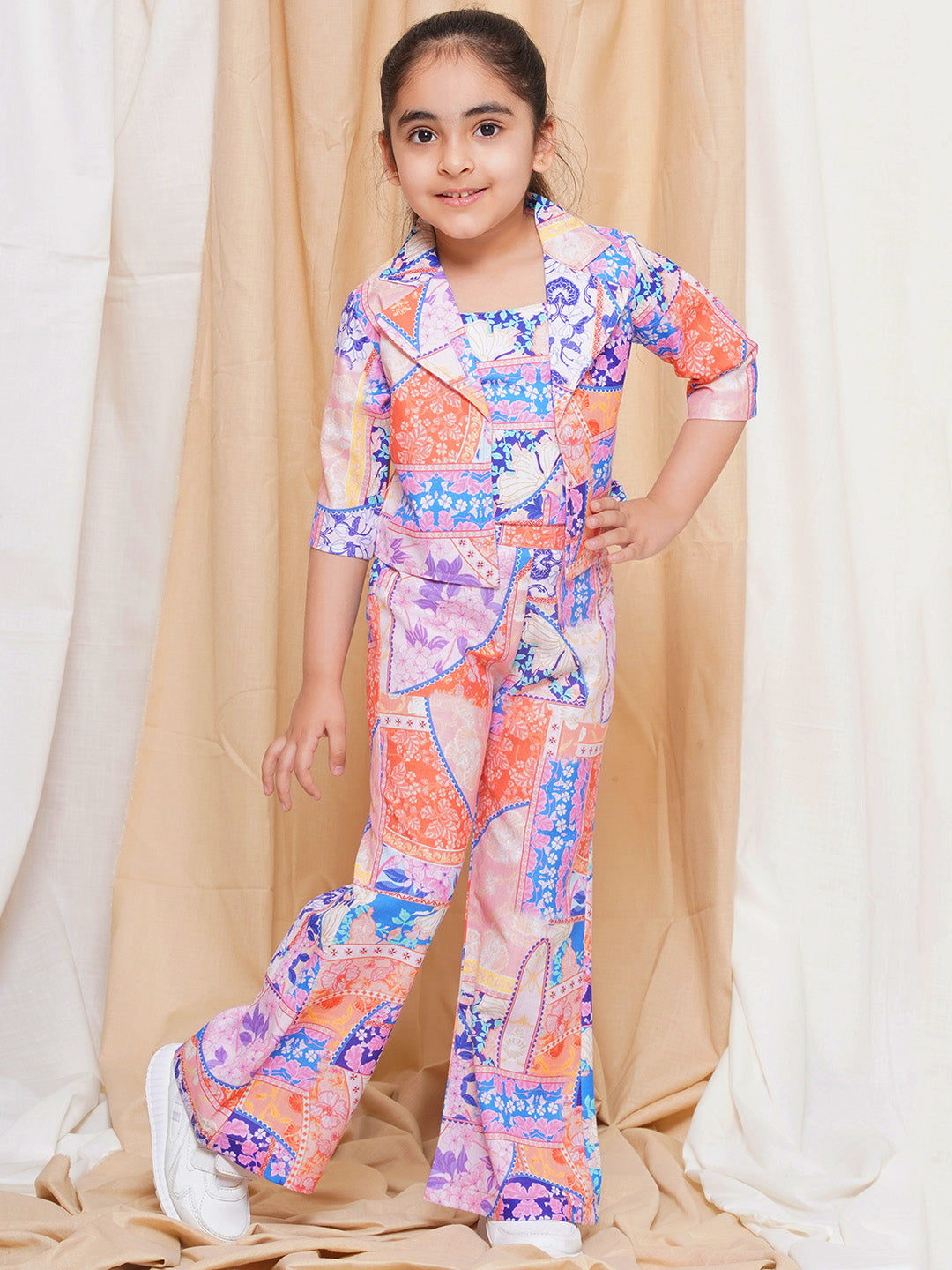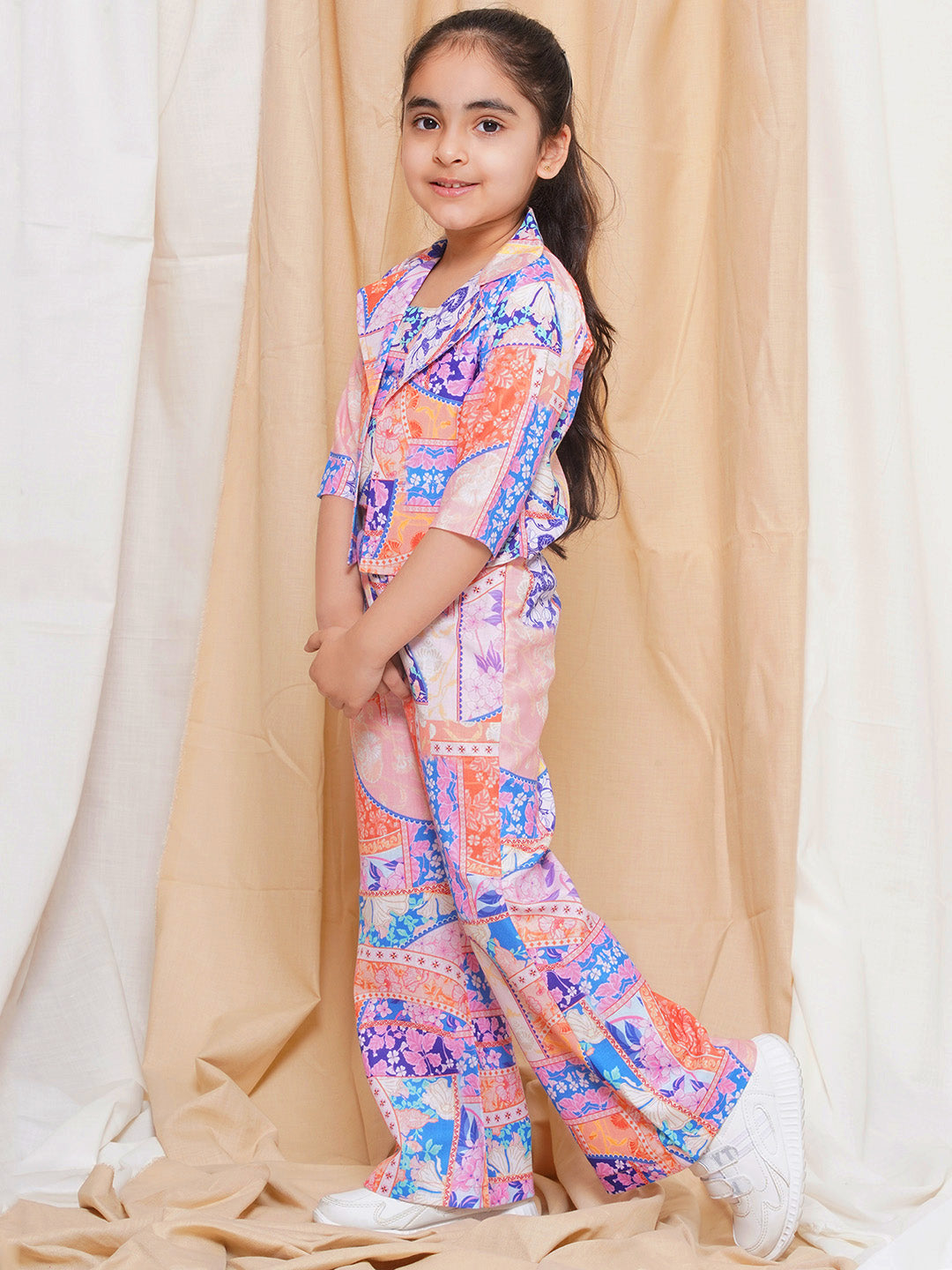 The AJ Dezines Three Fourth Sleeve Purple Printed Cotton Top, Pant, and Jacket for Girls is a vibrant outfit designed to bring joy to your daughter's wardrobe. Made from soft cotton fabric, this ensemble includes a top with a three-fourth sleeve design, showcasing a lively Purple print. The half pant and matching jacket provide a comfortable fit and style for various casual events. This AJ Dezines set allows your daughter to express her unique personality and stay fashionable in a comfortable way.