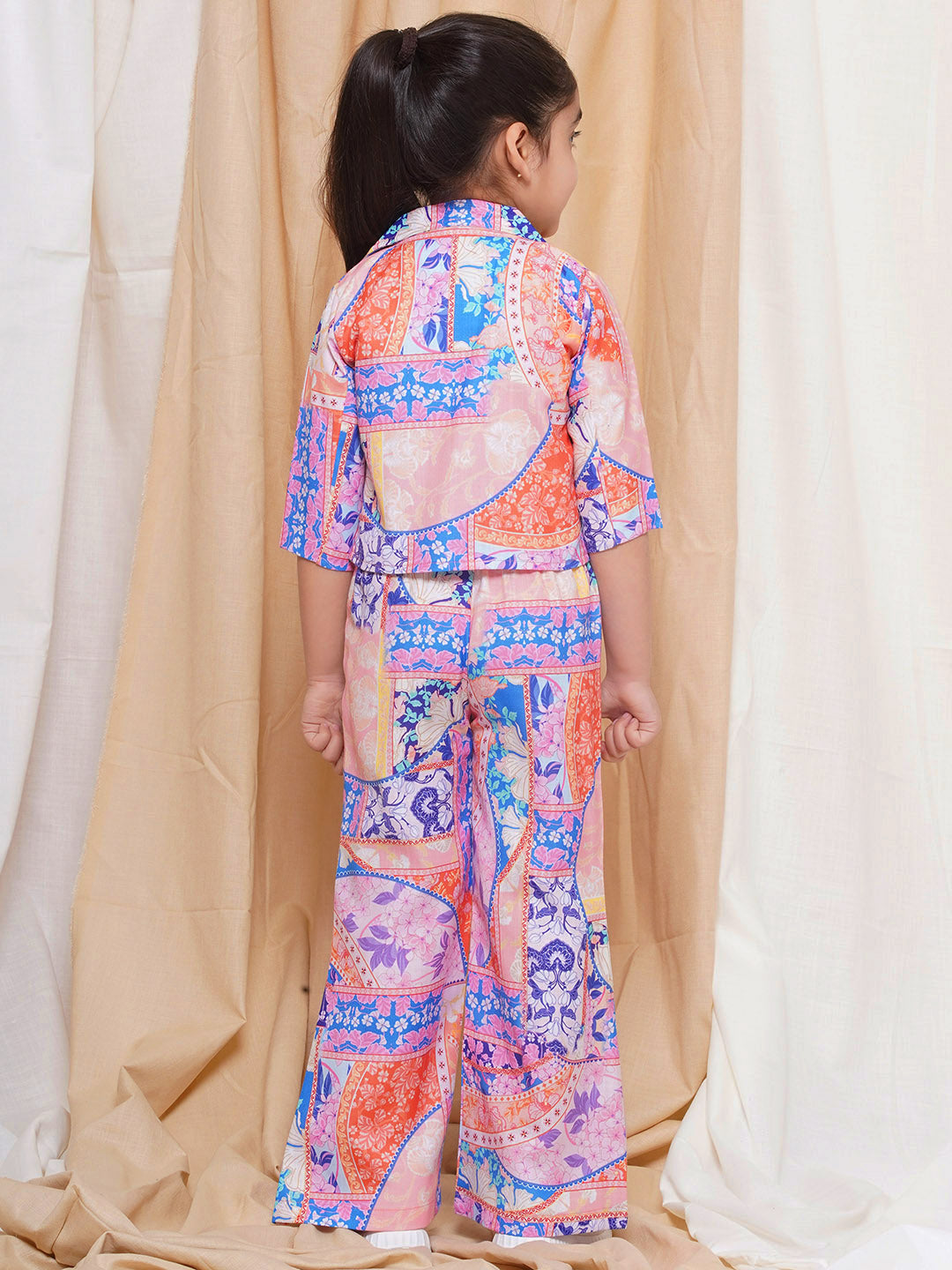 Kids Girls Purple Printed Cotton CO-Ords Set