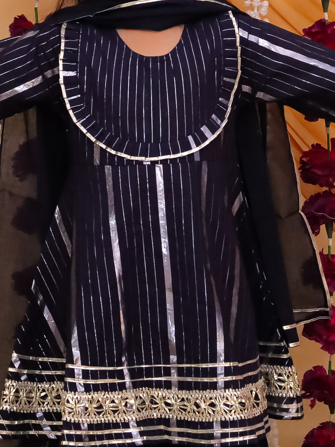 Elegant dark blue cotton sleeveless suit with lurex shimmer and gotta work embroidery. Soft, breathable fabric keeps your child comfortable for festivals, weddings, and special occasions.