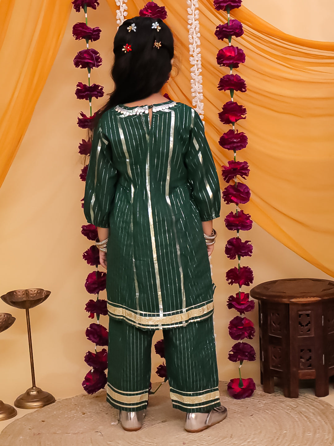 Dark Green Cotton Sleeveless Lurex and Gotta Work Girls Suit Set