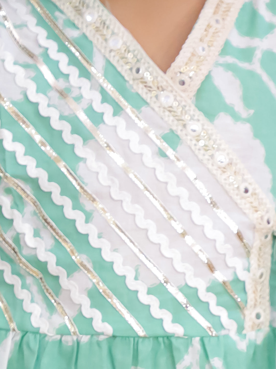 Girls Green Cotton 3/4th Sleeves Floral Printed with Lace Girls Suit Set
