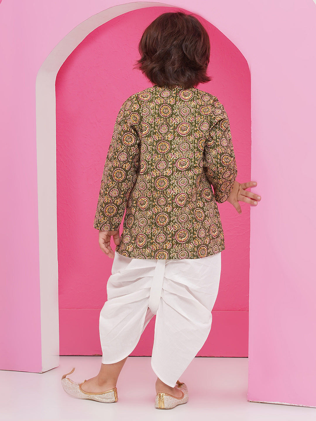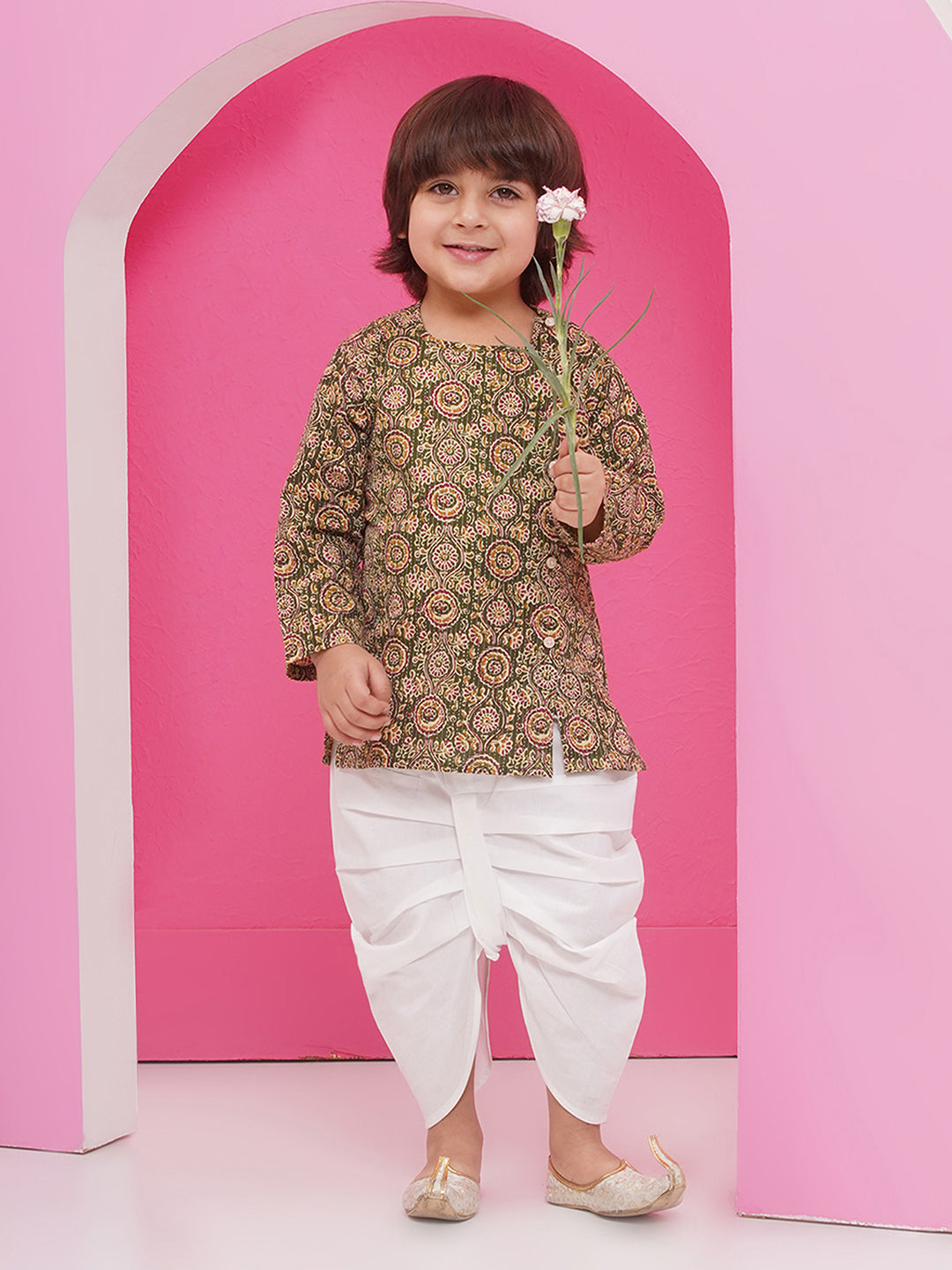 GREEN Pure Cotton Full sleeves Abstract Print Dhoti Set for Boys