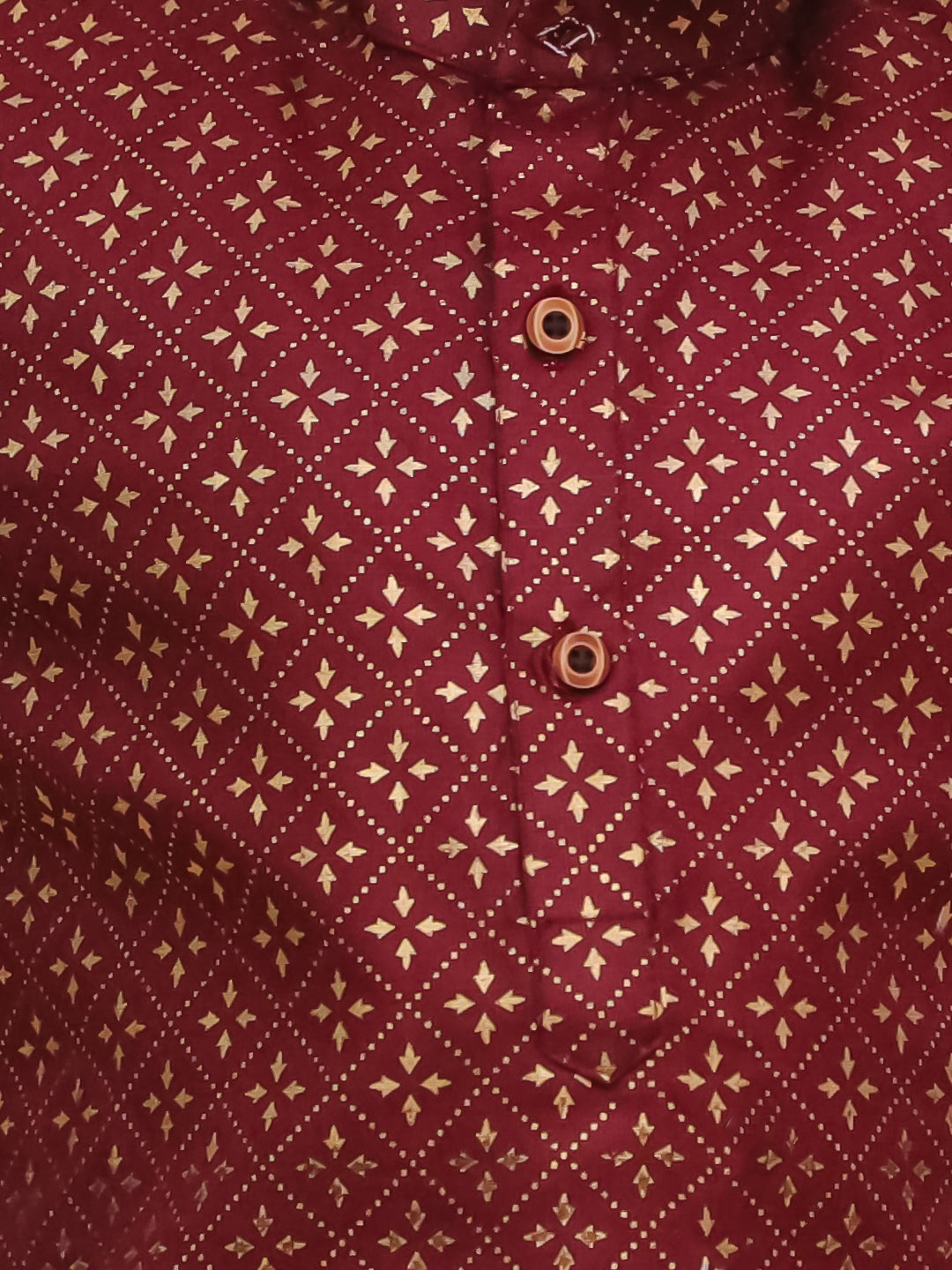 Boys Maroon Cotton Full sleeves Foil Printed Kurta Pyjama Set