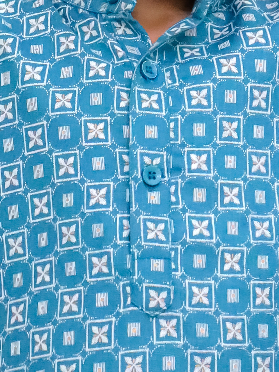 AJ Dezines Blue cotton kurta pyjama set for boys with Abstract print and full sleeves. Soft, stylish, and perfect for festive occasions or family events