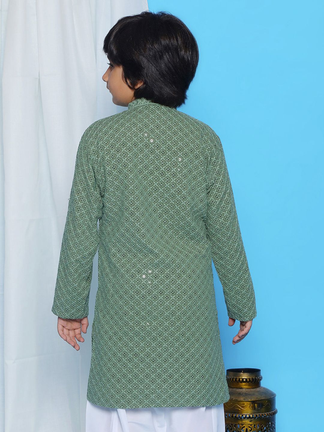 Aj Dezines Pista Schiffli Full Sleeves Embroidered Kurta For Boys