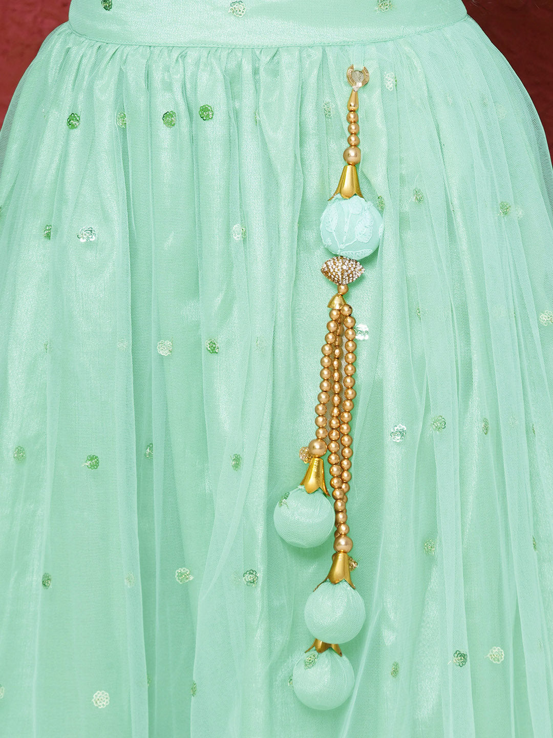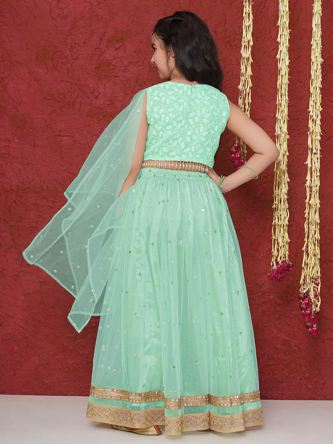 Aj Dezines Pista Schiffli Sleeveless Sequence Lehenga Choli For Girls