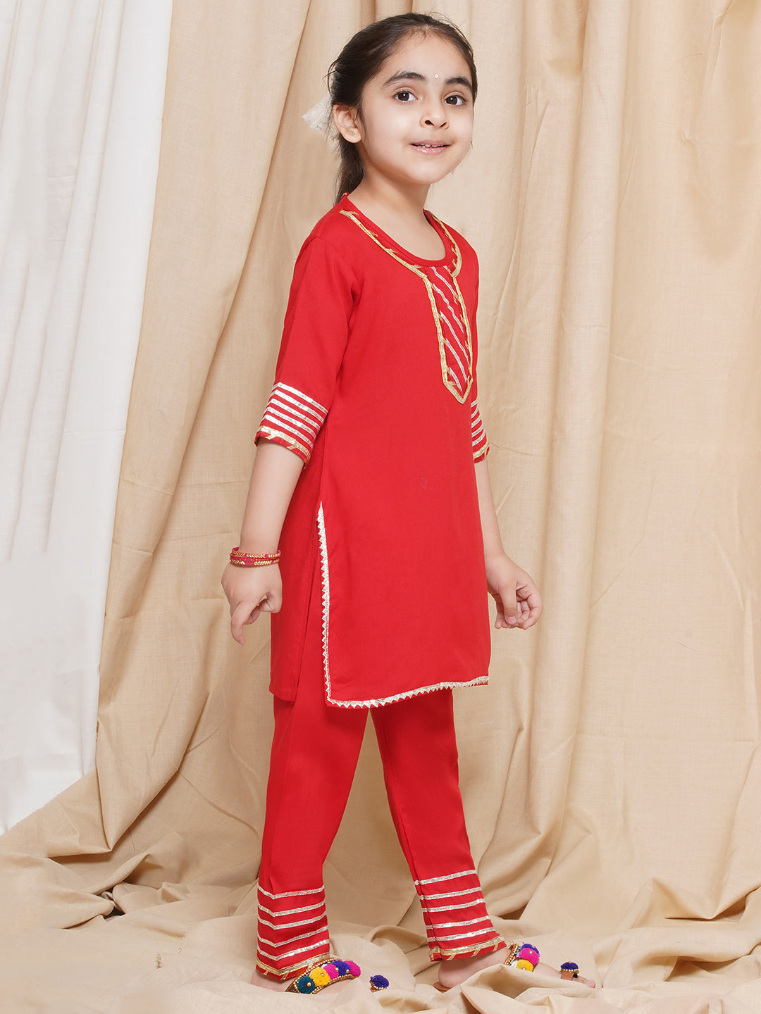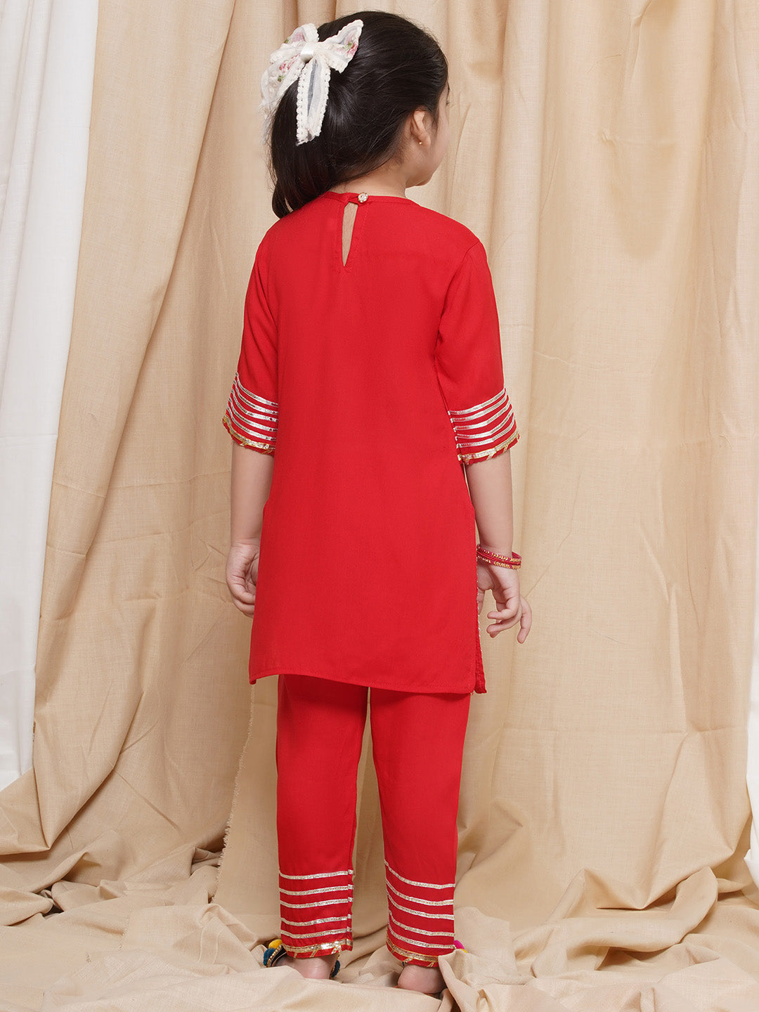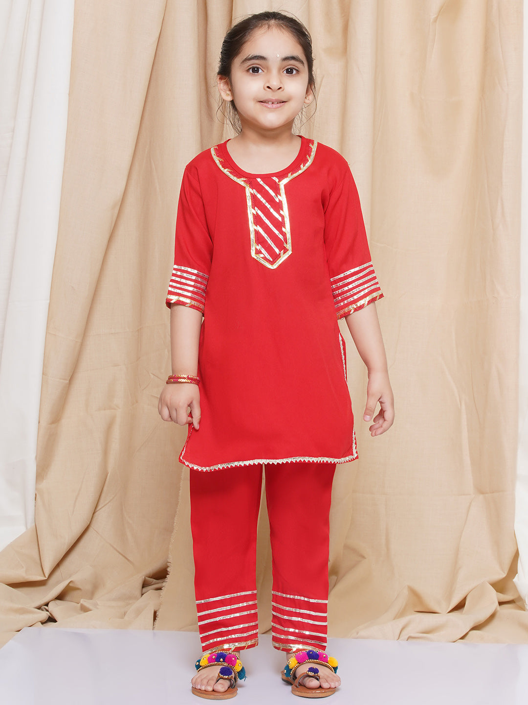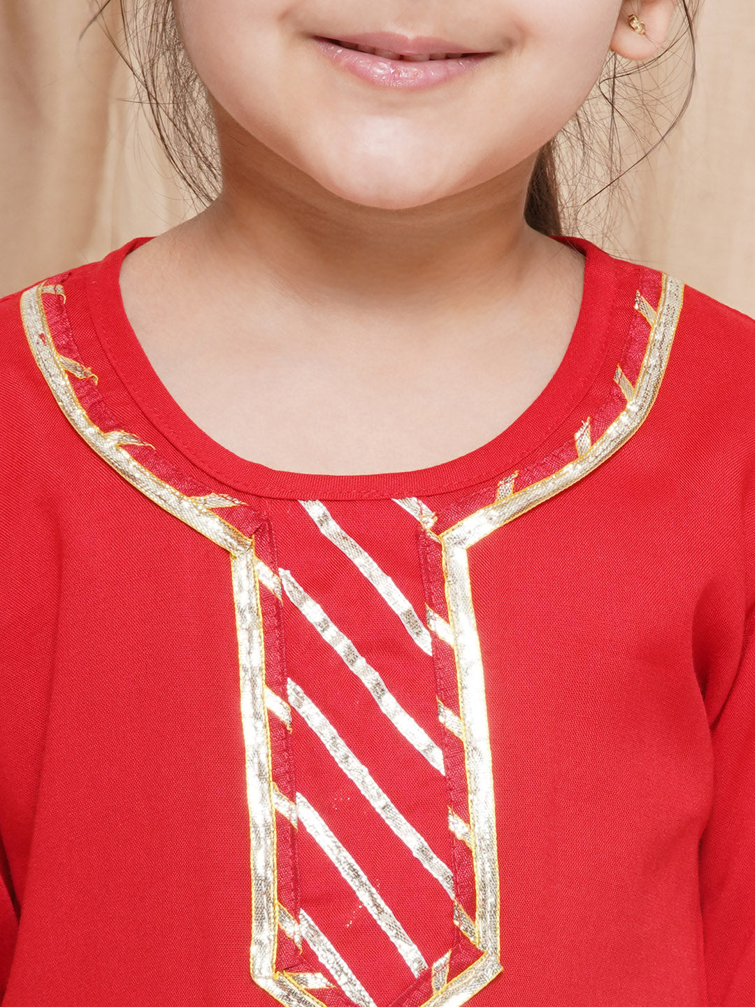 Kids Girls Red Gotta Work Rayon Kurta Pyjama Set