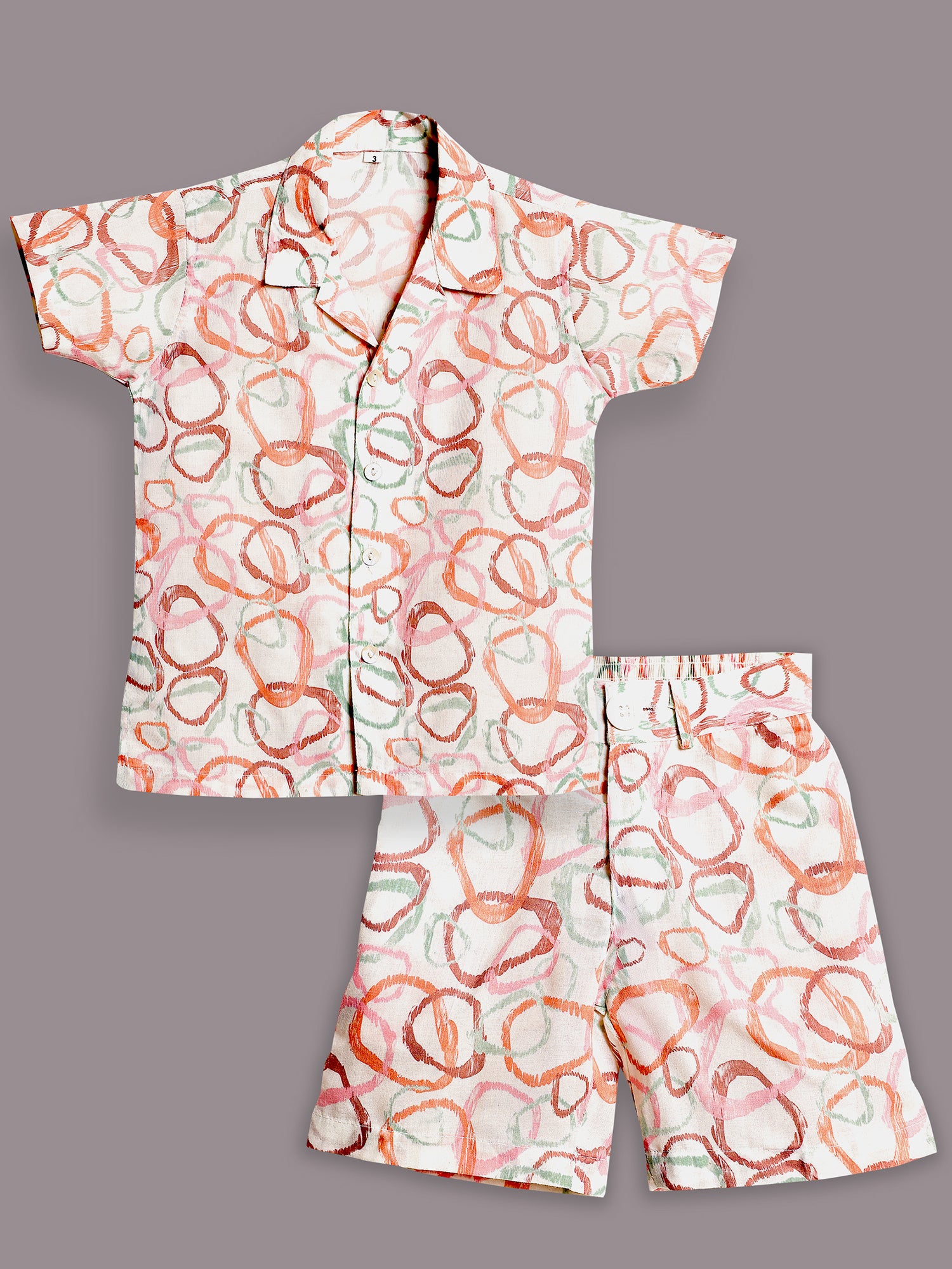 AJ Dezines White cotton co-ord set for boys features a bold abstract print, half sleeves, and matching bottoms. Soft, breathable, and perfect for playdates, outings, and everyday wear.