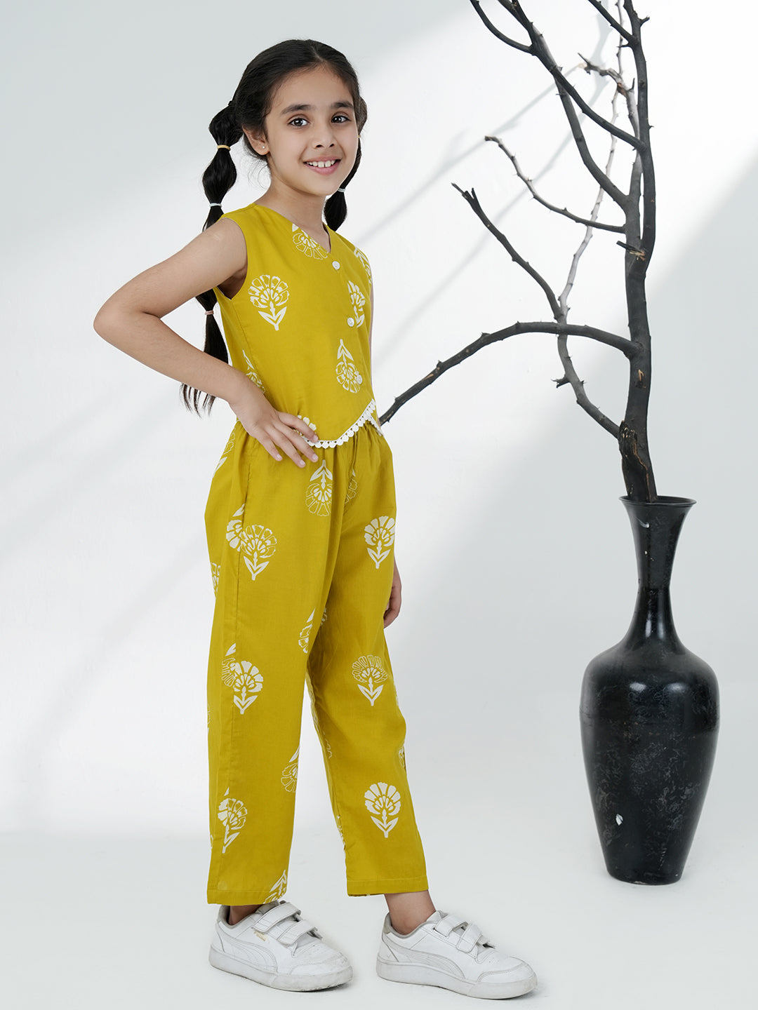 AJ Dezines Green Cotton Sleeveless Printed Girls Co-Ords