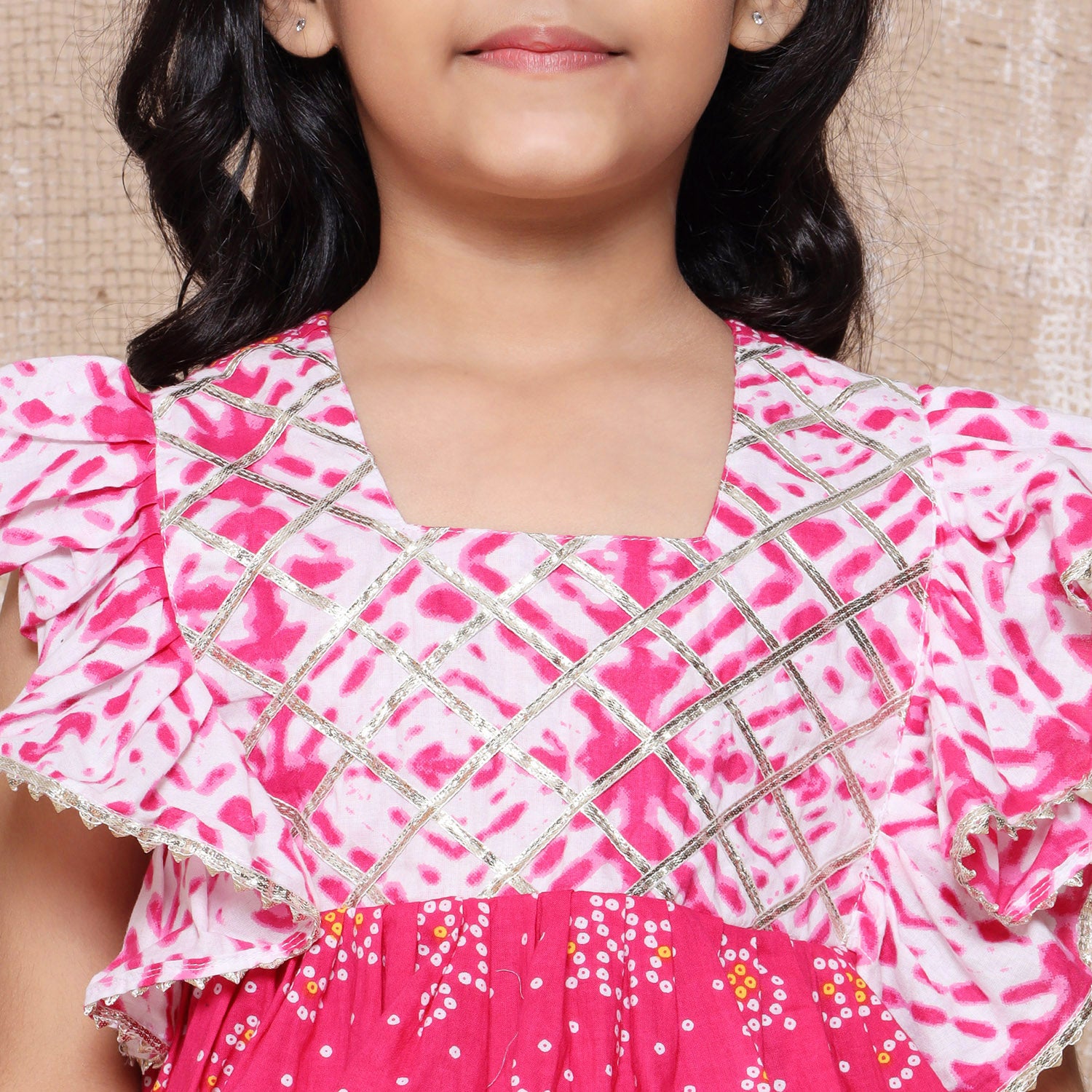 Kids Cotton Bandhani Print Sleeveless Lehenga Choli Set For Girls