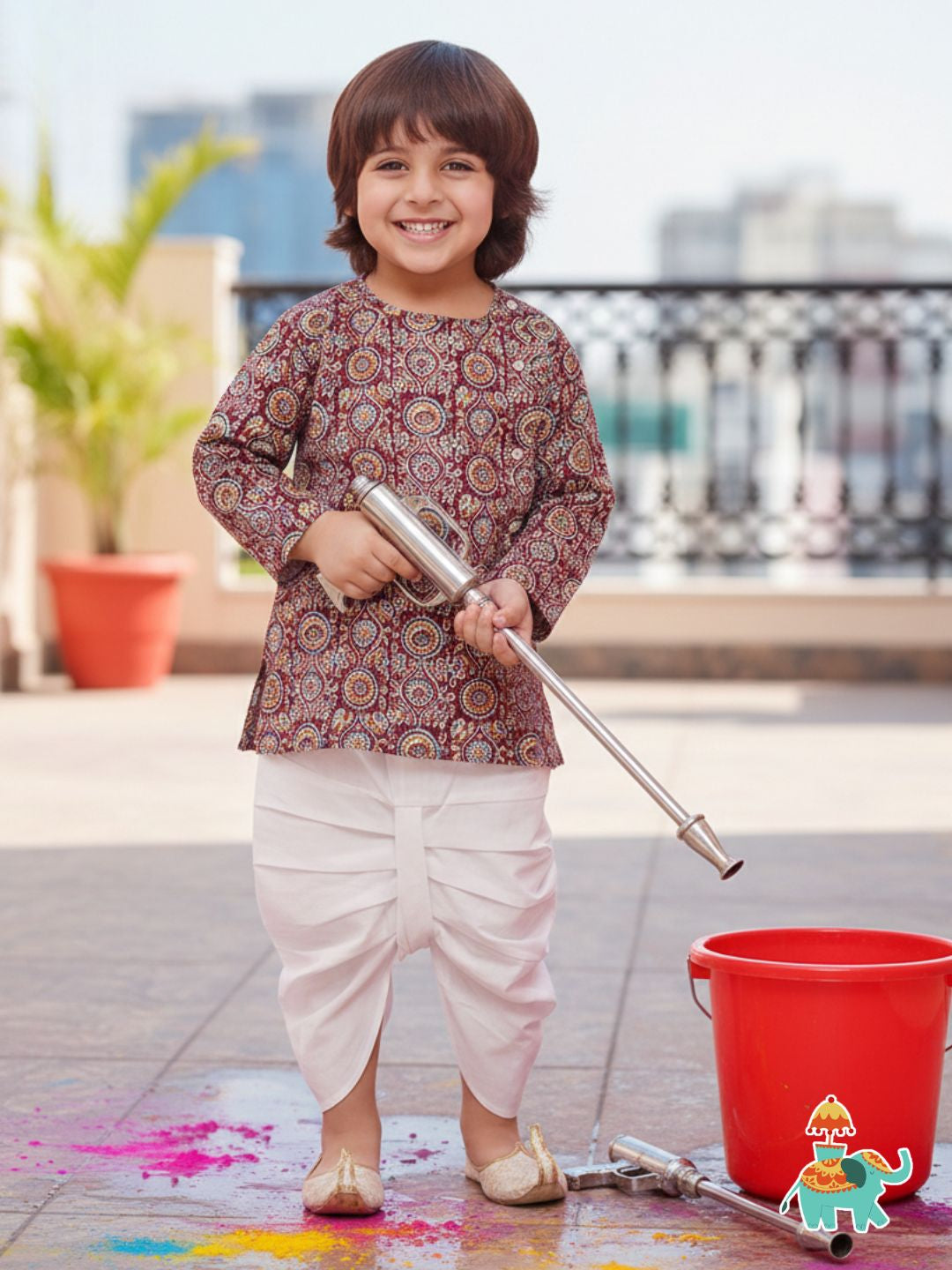 WINE Pure Cotton Full sleeves Abstract Print Dhoti Set for Boys